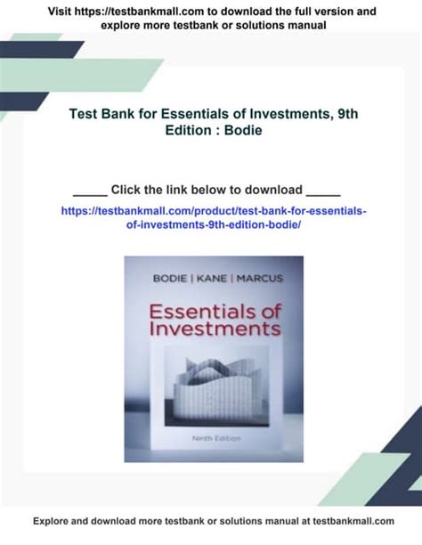Download online Essentials Of Investments 9th Edition Test Bank Kindle Editon