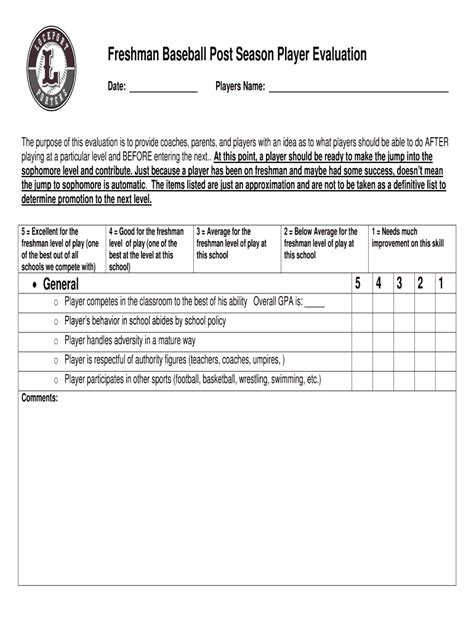 Read Freshman Baseball Post Season Player Evaluation Kindle Editon